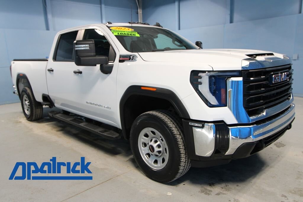 • featuring wired Android Auto and Apple CarPlay capability for compatible phones (STD),GOOSENECK / 5TH WHEEL PREP PACKAGE -- HITCH PLATFORM TO ACCEPT GOOSENECK OR 5TH WHEEL HITCH. Includes hitch platform with tray to accept ball stamped bed holes with removable caps installed and bed mounted 7-pin trailer harness (similar to UY2 harness). Includes (JL1) Trailer brake controller and (CGN) spray-on bedliner. Not available with (ZW9) pickup bed delete.),ENGINE BLOCK HEATER,BEDLINER SPRAY-ON PICKUP BEDLINER with GMC logo (does not include spray-on liner on tailgate due to Black composite inner panel),UPFITTER SWITCH KIT (5) Provides 3-30 amp and 2-20 amp configurable circuits to facilitate installation of aftermarket electrical accessories. Kit with all required parts will be shipped loose with the truck for installation by the dealer or upfitter at customer expense. Installation instructions and technical assistance available at www.gmupfitter.com.,TRAILER BRAKE CONTROLLER INTEGRATED,SNOW PLOW PREP/CAMPER PACKAGE includes (KW5) 220-amp alternator includes increased front GAWR on Heavy Duty models (NZZ) skid plates (transfer case and oil pan) pass through dash grommet hole and roof emergency light provisions. Contact GM Upfitter Integration at www.gmupfitter.com for plow installation details and assistance. Note: if ordered for Camper usage recommend ordering (UY2) Trailering wiring provisions,SUMMIT WHITE,LAMPS SMOKED AMBER ROOF MARKER (LED),REAR AXLE 3.42 RATIO,REAR CROSS TRAFFIC ALERT,1SA PRO SAFETY PLUS PACKAGE includes (UD7) Rear Park Assist (UFG) Rear Cross Traffic Alert (UKC) Lane Change Alert with Side Blind Zone Alert and (DWI) trailer mirrors,EXHAUST BRAKE,ENGINE DURAMAX 6.6L TURBO-DIESEL V8 B20-DIESEL COMPATIBLE (470 hp [350.5 kW] @ 2800 rpm 975 lb-ft of torque [1322 Nm] @ 1600 rpm) Includes (K05) engine block heater.),TIRES LT275/70R18E ALL-TERRAIN BLACKWALL,PICKUP BED includes bed assist step (STD),BACK-UP ALARM CALIBRATION This calibration will allow installation of an aftermarket backup alarm by disabling rear perimeter lighting,TIRE SPARE LT275/70R18 ALL-TERRAIN BLACKWALL,LED CARGO AREA LIGHTING located in cargo bed activated with switch on center switch bank or key fob,REAR PARKING ASSIST,TAILGATE GATE FUNCTION MANUAL WITH EZ LIFT includes power lock and release includes hitch area light,LICENSE PLATE KIT FRONT INCANDESCENT LIGHTING (will be forced on orders with ship-to states that require front license plate),WHEELS 18 (45.7 CM) 8-SPOKE PAINTED STEEL SILVER EXTENDED,Lane Departure Warning,Front Collision Mitigation,Front Collision Warning,Automatic Highbeams,Tow Hitch,Running Boards/Side Steps,Keyless Start,Locking/Limited Slip Differential,Four Wheel Drive,Tow Hooks,Power Steering,ABS,4-Wheel Disc Brakes,Steel Wheels,Tires - Front All-Season,Tires - Rear All-Season,Conventional Spare Tire,Daytime Running Lights,Automatic Highbeams,AM/FM Stereo,MP3 Capability,Bluetooth Connection,Auxiliary Audio Input,Smart Device Integration,Bluetooth Connection,Bluetooth Connection,Smart Device Integration,WiFi Hotspot,Split Bench Seat,Pass-Through Rear Seat,Rear Bench Seat,Floor Mats,Power Windows,Power Windows,Power Windows,Power Door Locks,Keyless Entry,Power Door Locks,MP3 Capability,Auxiliary Audio Input,Power Outlet,A/C,Front Collision Mitigation,Front Collision Mitigation,Front Collision Warning,Traction Control,Stability Control,Daytime Running Lights,Daytime Running Lights,Driver Air Bag,Passenger Air Bag,Front Side Air Bag,Front Head Air Bag,Rear Head Air Bag,Passenger Air Bag Sensor,Telematics,Requires Subscription,Back-Up Camera,Front Collision Warning,Lane Departure Warning,Driver Restriction Features,Tire Pressure Monitor,Telematics,Requires Subscription